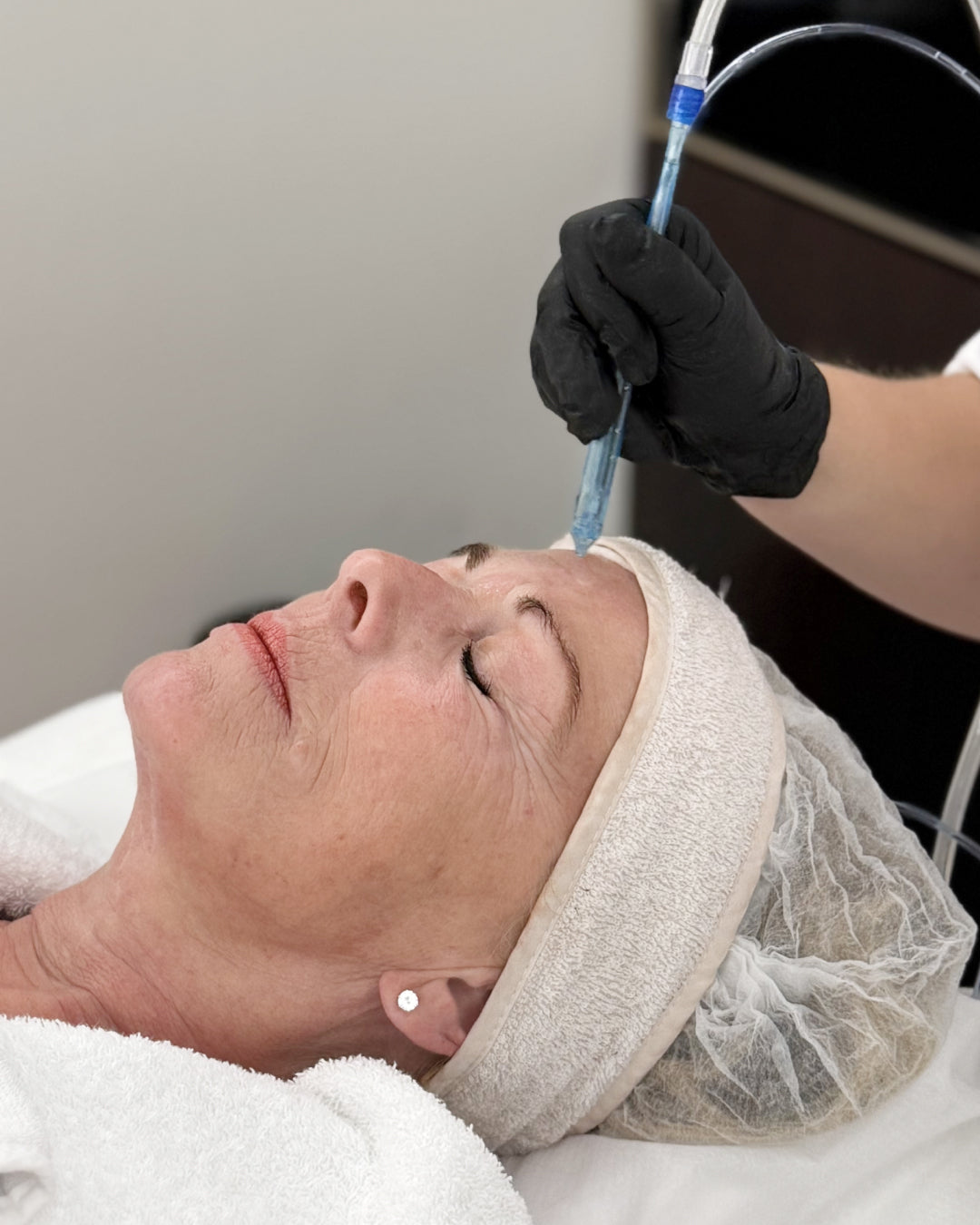 Der MesoJet nutzt einen Überschallstrahl aus Mikrotröpfchen, um die Haut zu peelen, mit Feuchtigkeit zu versorgen und hochwirksame Inhaltsstoffe tief in die Hautschichten einzuschleusen – ganz ohne Nadeln. Optional stimuliert kapazitive Radiofrequenz die Kollagen- und Elastinproduktion für einen sofortigen und langanhaltenden Lifting-Effekt.